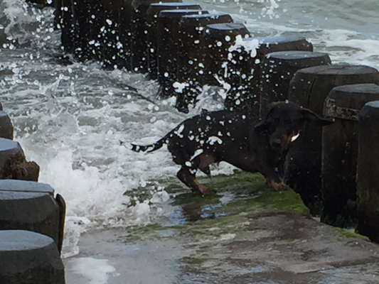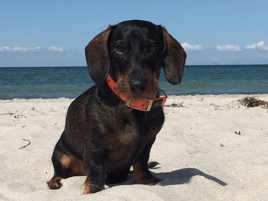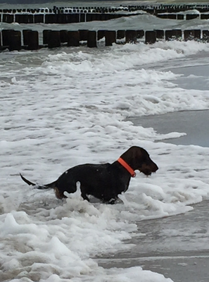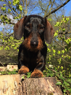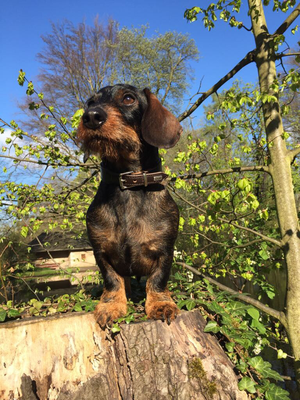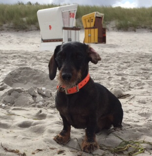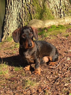 Rauhhaarstandardrüde aus Zwergverpaarung dunkelsaufarben